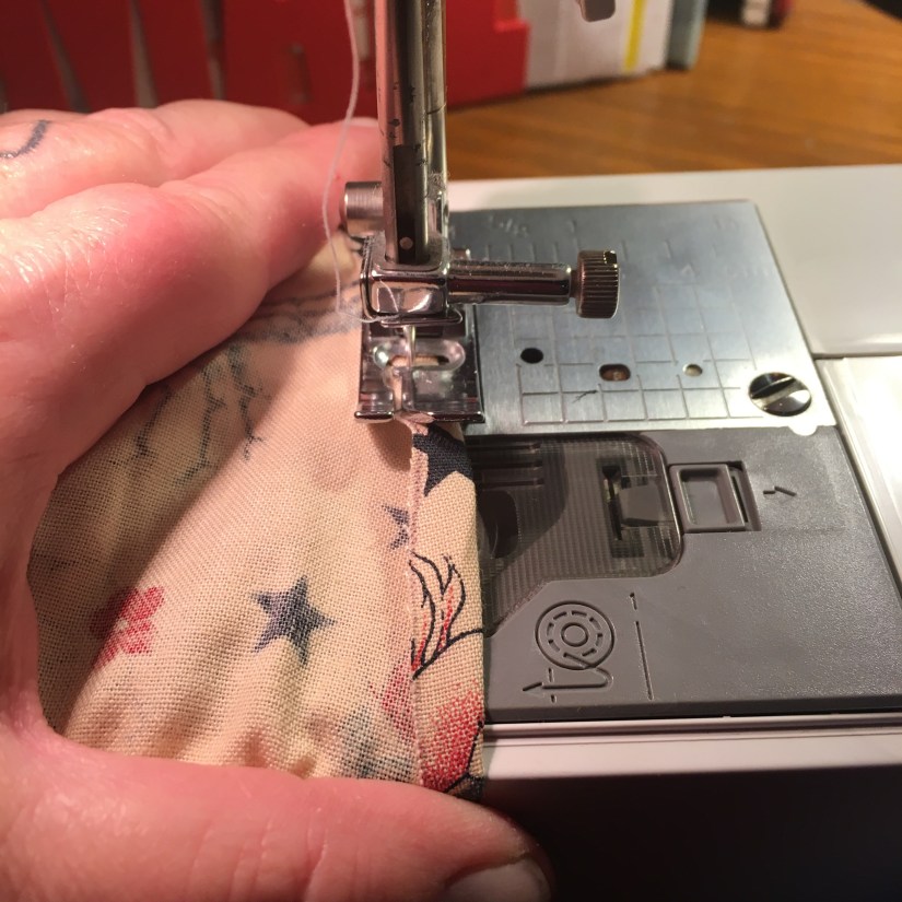 - Cut the elastic slightly smaller than your head width. Sew the elastic to the wrong side of the fabric, 5cm from the edge. This will allow a frill to form at the bottom edge. You can pin it prior to sewing it to make sure you get it right around the circle. (As you sew or pin the elastic, pull the elastic slightly to make sure it can be sewn into a full circle and give a slight gathered appearance)