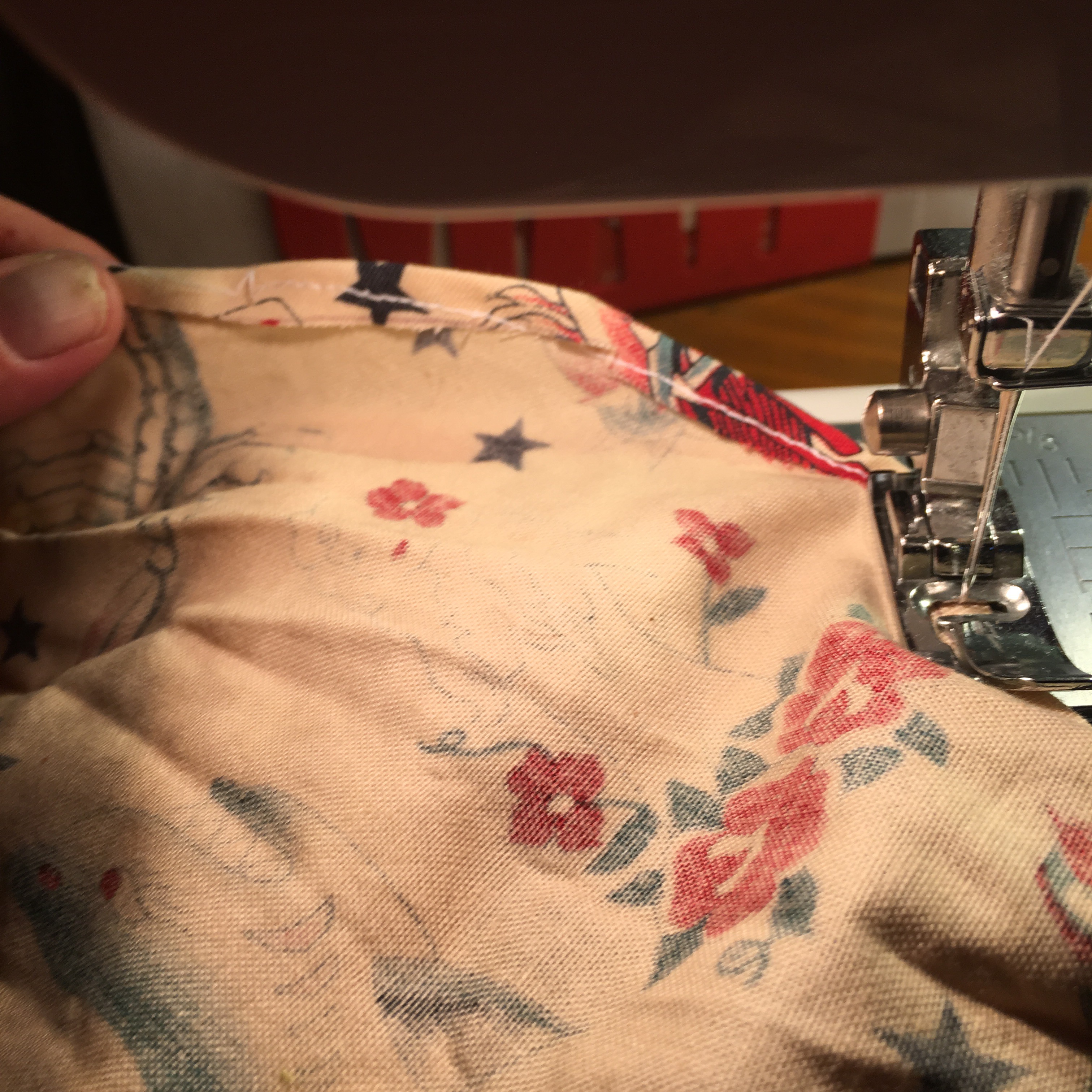 Cut the fabric into a circle - Next, you either hem the circle material or use ribbon to sew around the hem for a decorative edging!