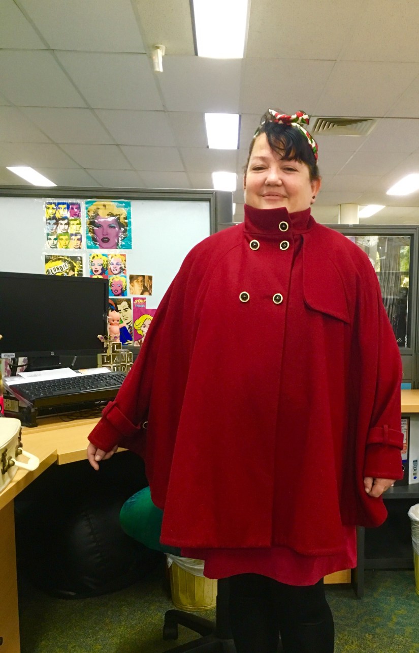 This is what is known as a vintage nurses cape. It is warm and comfortable and fir the extra cold days can easily be worn with a jumper underneath. It was a great find.
