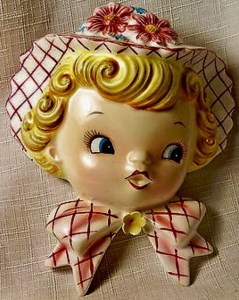 This is a Lefton Wall Lady. She is very lovely and an extremely hard to piece to find! To date, I have not seen this one but I am on the lookout. George Zoltan Lefton made china and porcelain creations from 1940 through to the 1990s. But this a typical 1950s piece. You will know it is a real Lefton creation if it is stamped on it. But in later pieces, Lefton used stickers as his identifying marks. These may have deteriorated over time so may be less noticeable.