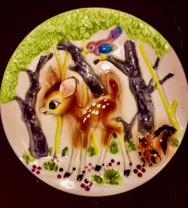 I just adore the 3d effect on the deer, squirrel, bird and trees. You can find a variety of designs in the 3D plates. So try find tone that relates to your theme or likes. There popularity was mainly in the 1970s.