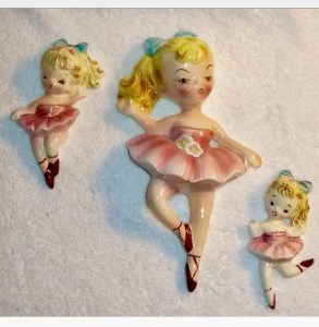 This is a Lefton ballerina set. I have seen this one twice and unfortunately did not get the opportunity to purchase them. I also did not realise the rarity of the items! However, I won’t lose the chance the third time…. hopefully third time lucky! I love this set and it is typical of Lefton’s 1950s work, such as the mermaid wall ceramics.