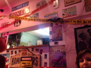 The diner was decorated extra special for Halloween and it had a special mix of 1950s Halloween music. The whole atmosphere was so enjoyable!! Each table also had spiderweb tablecloths.