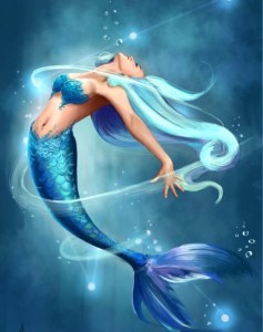 Mermaids are legendary creatures of the sea. The head and upper body are of a female human with the tail of a fish. Mermaid is a compound of old English – merely meaning sea and maid, being a young woman.