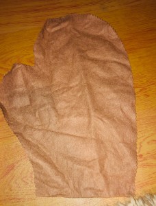 1. To begin with, trace around your hand on a piece of paper. Do an over exaggerated trace as I have done in the picture below. This allows for any size hand to use the glove and also ease to pull on and off.