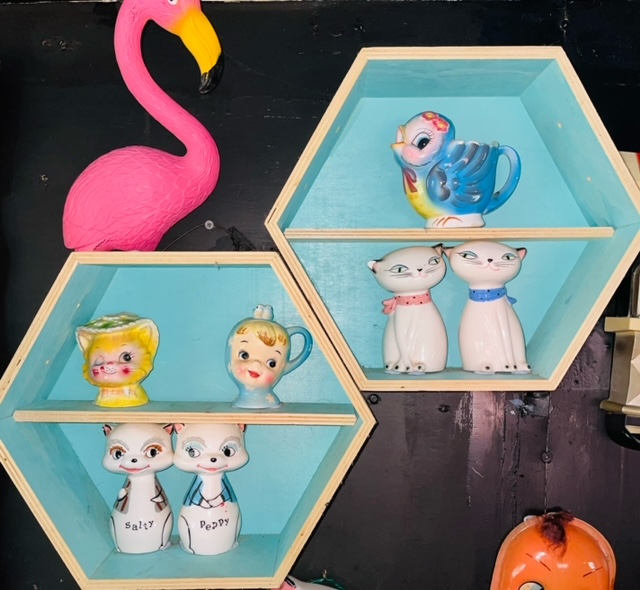 In the 1950s, walls of homes often had shadow boxes. These were a box on the wall with mini shelves, maybe a mirror, often small and you displayed your small trinkets on them.